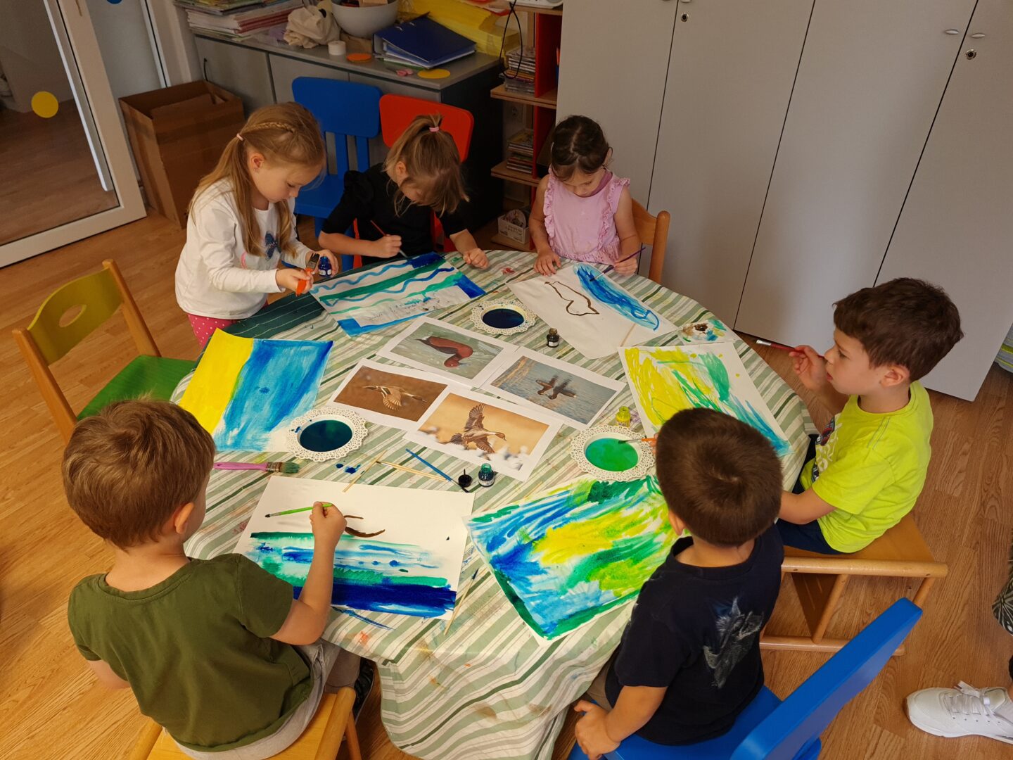V mesecu APRILU pa so migale tudi šoje: poleg likovnih dejavnosti ter pesmi o ‘miganju’, smo: